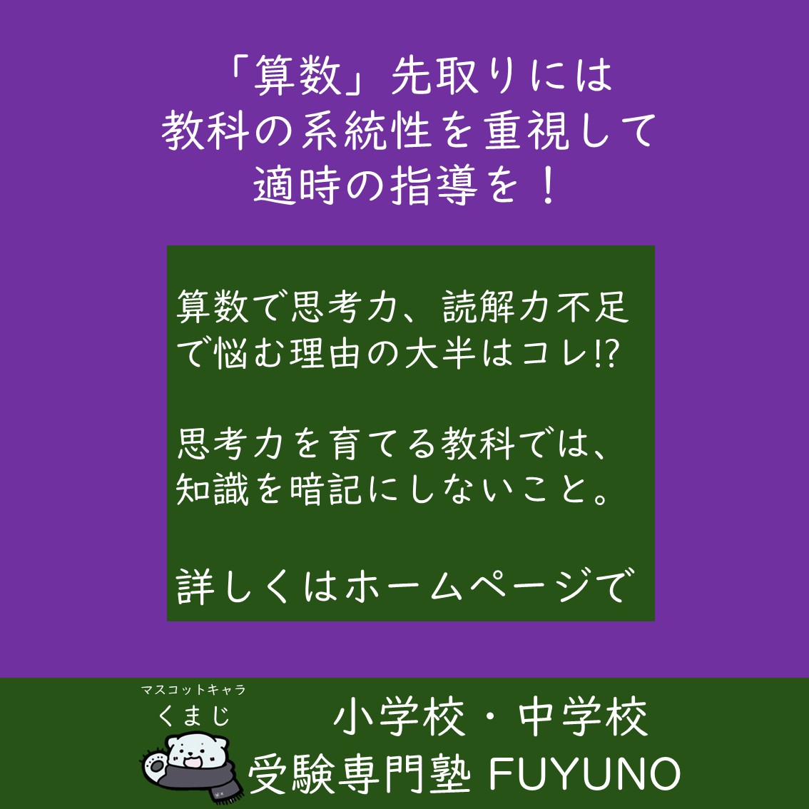 算数は、答えを出すことよりも、どう考えるかが大切。
